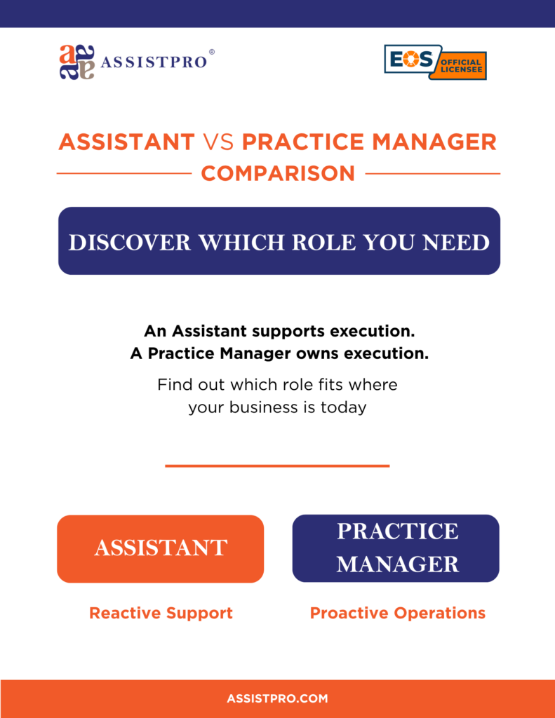 The Assistant vs Practice Manager Comparison was designed to help entrepreneurs identify exactly what level of delegation support their business needs right now. An Assistant takes work off your plate. A Practice Manager ensures the plate was designed correctly.